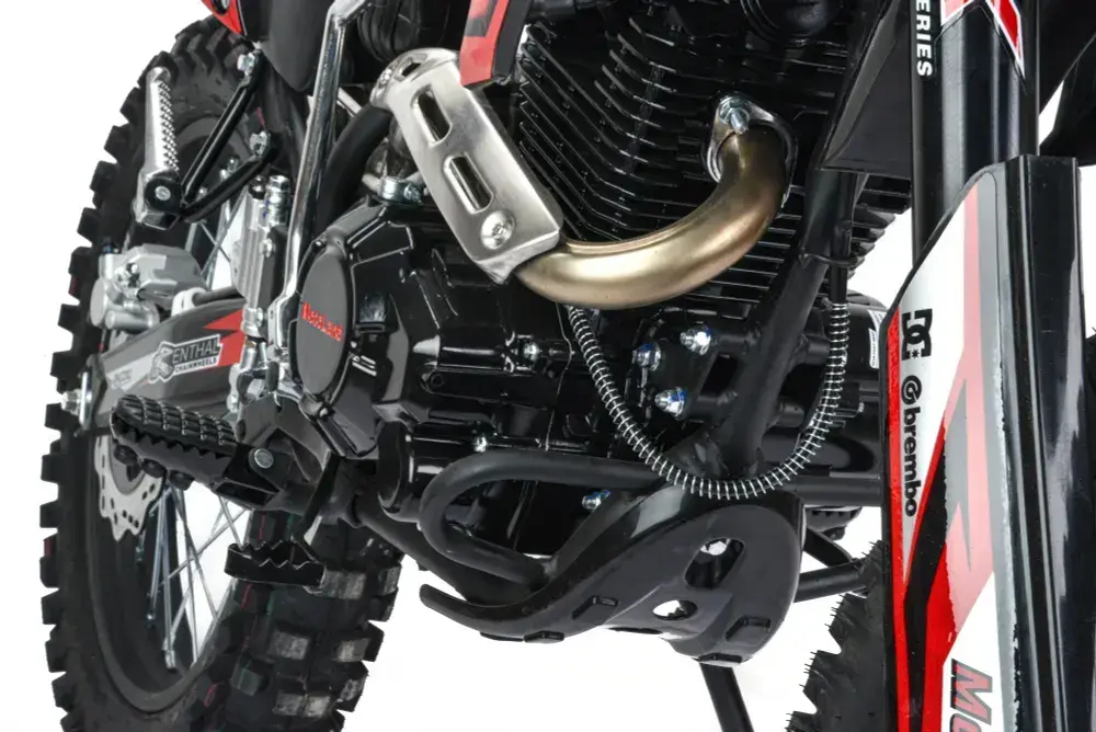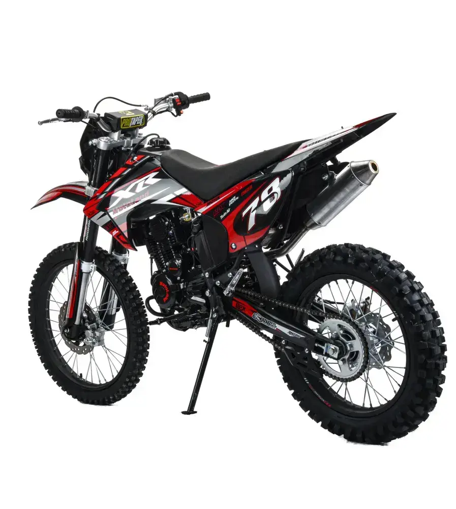 Motoland XR 300 Lite (175FMM) – бюджетный короткобазный кроссовый мотоцикл с уменьшенной высотой по седлу и мощным двигателем 175FMM на воздушном охлаждении 300 cc мощностью 25 лс. Ключевыми особенностями мотоцикла являются его компактные габариты, стальная рама, современная подвеска с предустановленными настройками с завода, мощные тормоза, стальные колесные диски, наличие электростартера и кик стартера, прямоточный выхлоп, обвес из АБС пластика, LED оптика с возможностью переключения ближний \дальний, заниженное комфортное сидение. - Двигатель ZS 175FMM – 300 кубовый «тяговитый» двигатель с высокими показателями крутящего момента и мощностью 25 лс, на воздушном охлаждении. -карбюратор NIBBI PE 30 обеспечивает бесперебойную работу двигателя в любом диапазоне температуры и высоты. - Стальная рама обеспечивает солидный запас прочности, ресурс и ремонтопригодность - Энергоемкая подвеска с заводскими настройками гарантирует уверенное преодоление неровностей дороги без «клевания носом» при торможении и обеспечивает комфорт райдера даже сидя на сидении. - LED фара - 2 режима работы, обеспечивающие хороший уровень освещения в темное время суток - электростартер\кик стартер дарят удобство и надежность в любых условиях эксплуатации - стальные колеса 21\18 максимальная надежность от деформации обода. -обвес на мотоцикле выполнен из «неломающегося» АБС пластика, крылья имеют сложный профиль для большой жесткости, необходимой при катании по грязи, предотвращающие вибрации при налипшем на них грунте. - гидравлические 2х поршневые дисковые тормоза с армированными гидролиниями обеспечивают понятную модуляцию и высокую мощность. - резина с оптимально подобранным компаундом и рисунком протектора обеспечивает отличное качество разгона, торможения и удержания в поворотах на грунте, а так же износоустойчивость и ресурс - руль 28 мм со средним подъемом - уверенное динамичное руление в стойке за счет низкого центра масс и повышенный запас прочности - подножки для пассажира - цепь 520 для увеличенного срока эксплуатации - стальные звезды для большого ресурса - счетчик моточасов для отслеживания регламентов ТО - бак на 9 литров предполагает прохваты до 130 км в автономном режиме - сухой вес около 120 кг позволит управлять мотоциклом без лишних трудозатрат XR 300Lite – один из наиболее доступных на рынке кроссовых мотоциклов с двигателем ZS 175FMM. Великолепно подходит для невысоких райдеров, а так же для новичков и прокатов за счет своих габаритов, большого ресурса, простоты обслуживания и интуитивно понятного эластичного двигателя.