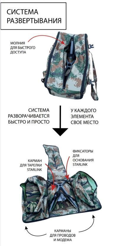 Рюкзак трансформер обеспечивает комфортную и безопасную транспортировку и эксплуатацию вашего STARLINK.