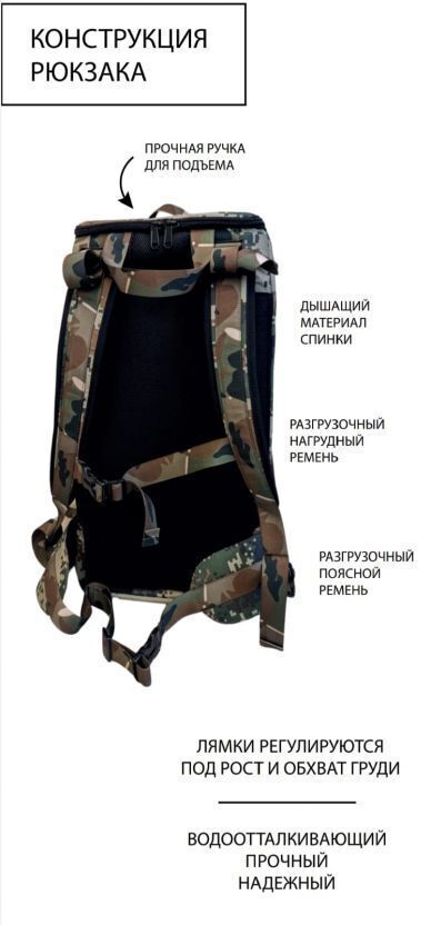 Лямки регулируются под рост и обхват груди. Материал, из которого изготовлен рюкзак водоотталкивающий, прочный и надежный.