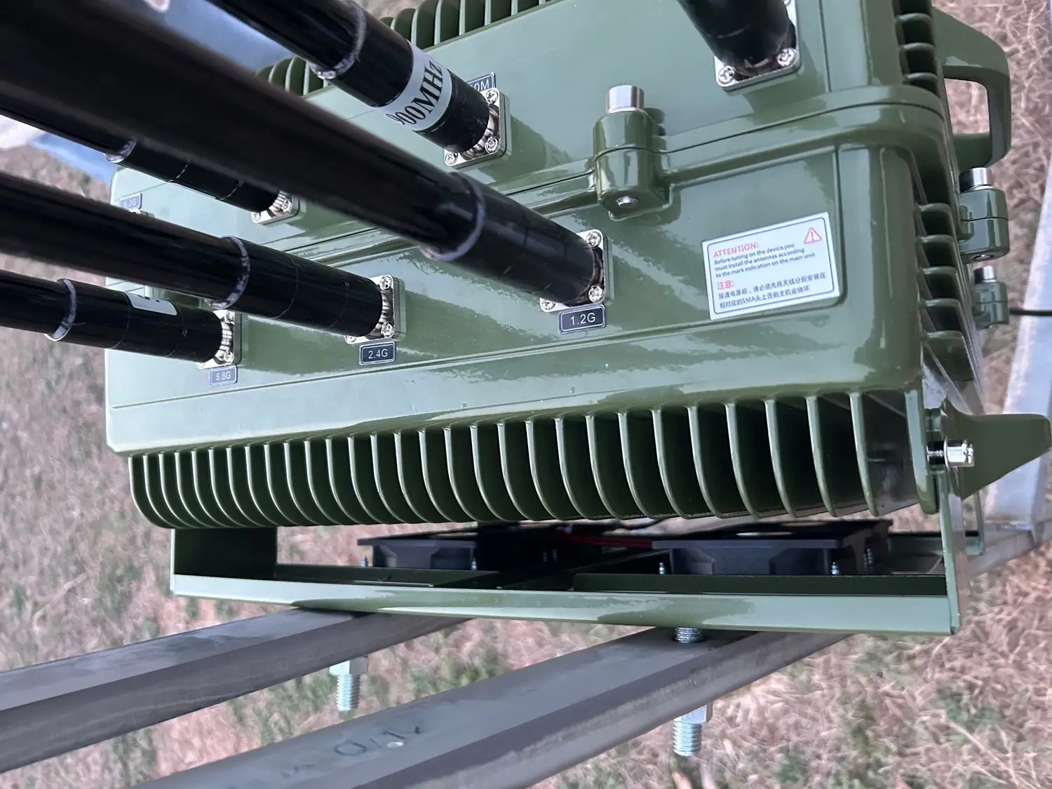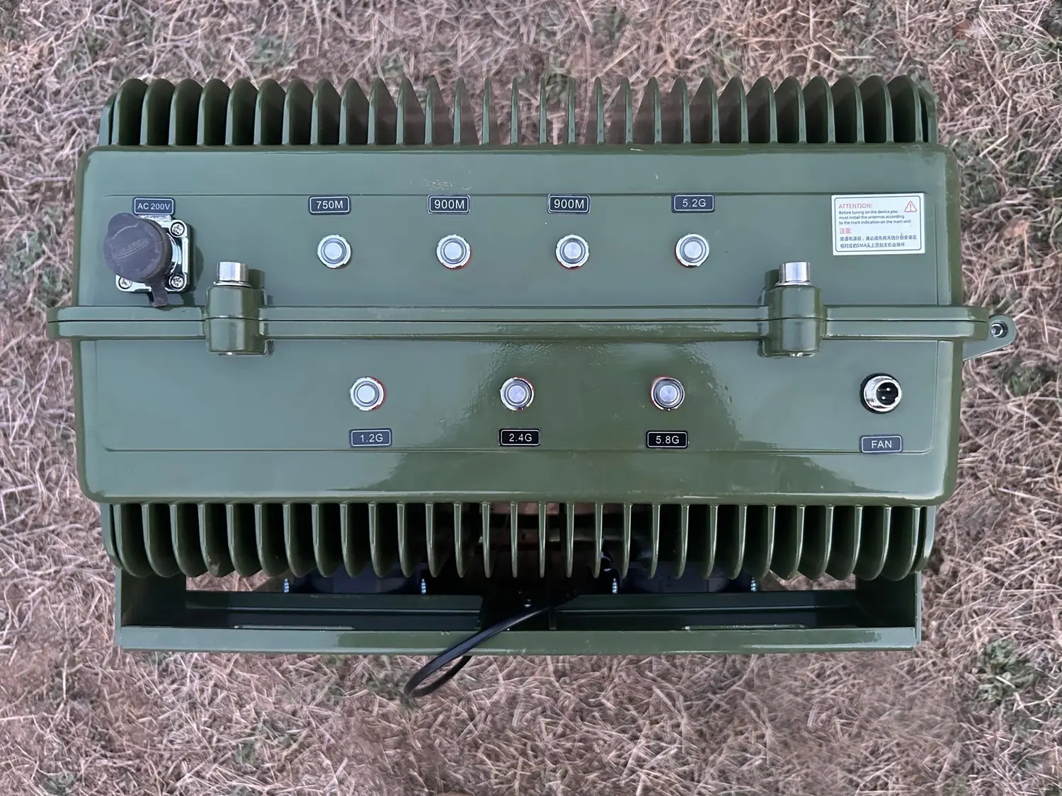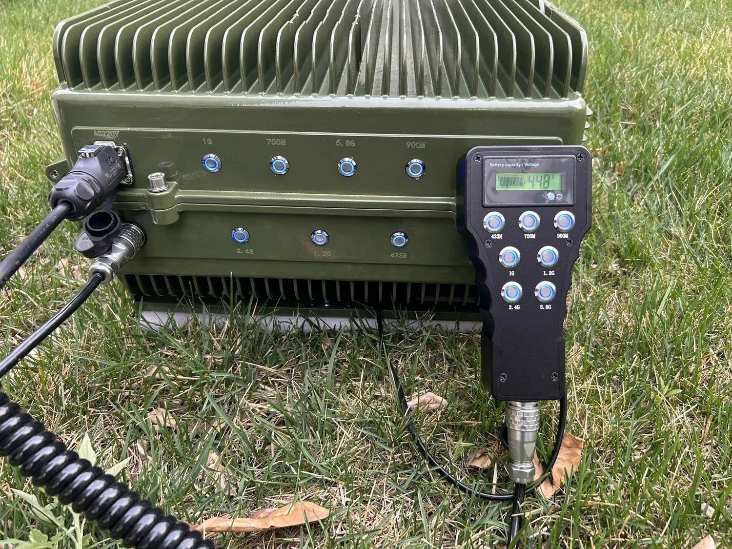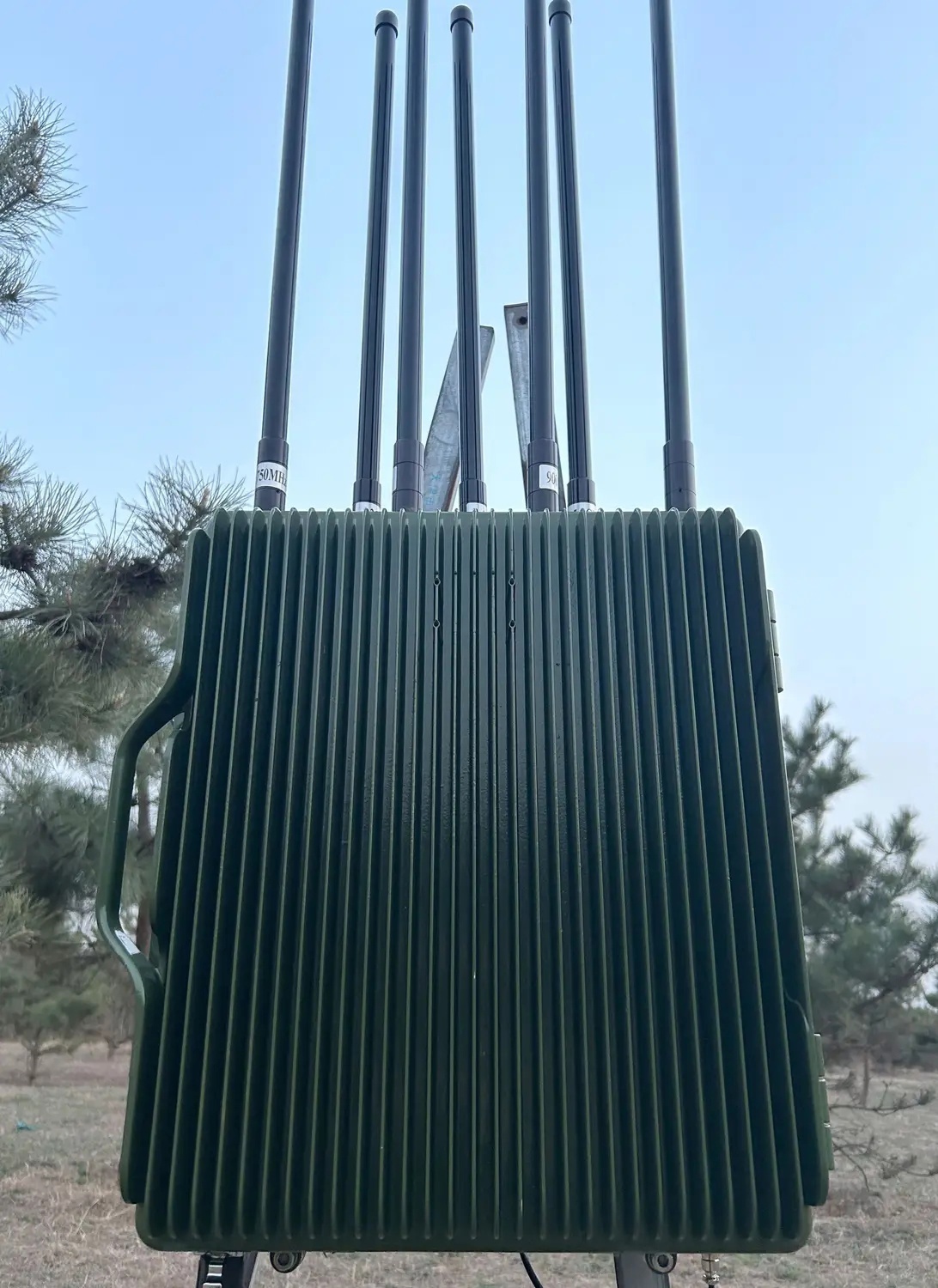 Изделие оснащено малогабаритной двухполяризационной всенаправленной антенной с высоким коэффициентом усиления, которая решает технические трудности низкой частоты и больших размеров, обеспечивает выход сигнала мощности, реализует передачу низкой мощности, большого расстояния и низкого уровня излучения, а также экологически безопасной. Покрытие 360 градусов и эффективная защита от нескольких целей. Параметры оборудования Система использует технологию, назначение которой было изменено с военного на гражданское, чтобы получить недорогое, широко развернутое полностью автоматическое оборудование для защиты от БПЛА. С двухметровым кабелем и пультом управления, с помощью которого можно дистанционно включать и выключать каждую частотную полосу в машине или в окопах. Расстояние контрмеры Радиус 1-3 км Частоты работы 433M+750M+900M+1.0G+1.2G+2.4G+5.8G Направление антенны Направленная антенна, всенаправленная антенна необязательна Форма питания AC 220V Энергопотребление 400W Измерение 450mm X 368mm X 178mm, без учета антенны Вес 20Kg Рабочая температура -20℃~+55℃ (на открытом воздухе), защита от перегрева 75℃ Температура хранения -40℃~+80℃ (на открытом воздухе), функция автоматического подогрева Механические условия После 500 км транспортной вибрации; Устройство может работать нормально, а виброустойчивость отвечает требованиям GB/T14587.10-2005. Уровень защиты IP65 Защита от дождя, ветра, песка, влаги, коррозии, соляных брызг, тумана, молнии и другие функции