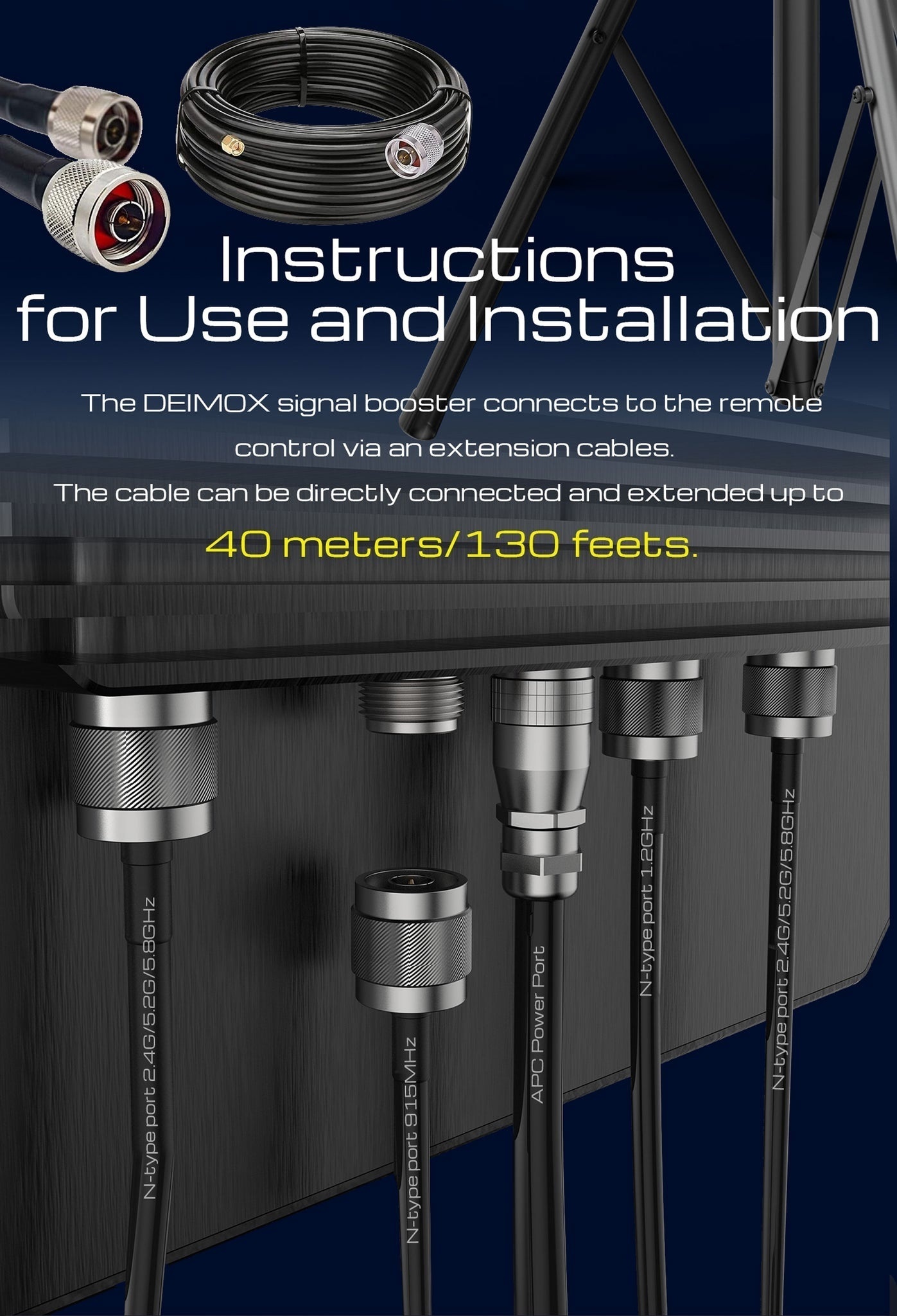 DEIMOX с усилителем и антенной в 20 раз увеличивает дальность действия аксессуаров для дронов DJI: Mavic 2 Pro, Zoom/Mini/2/Air2/2S/3 RC-N1/RC PRO Classic/DJI RC 2, Platinum/Enterprise, Phantom 3/ 4 A/Advanced/Pro/V2.0/RTK, Inspire 1/2 Pro, Matrice 100/300/200/210/600 Pro/RTK, Smart Controller, Cendence. Anafi, Autel EVO II Max 4T и любые FPV дроны.